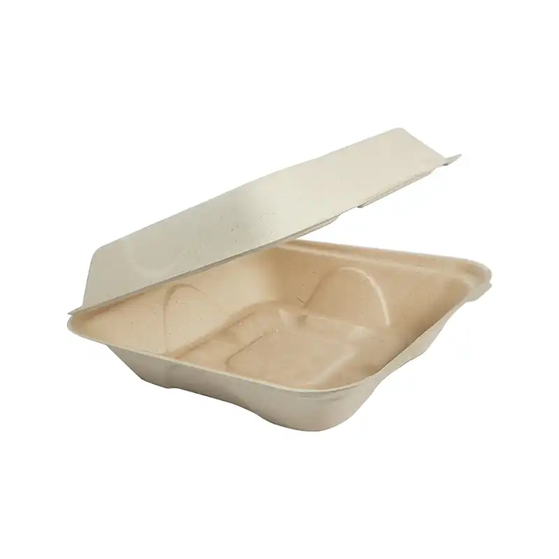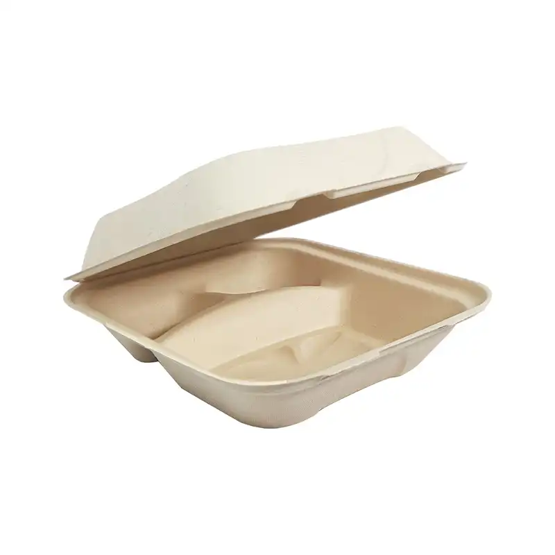 These eco-friendly to-go containers are made from sugarcane fiber, a renewable resource. Unlike traditional foam containers, these clamshells are certified home and industrial compostable. Available in 3 compartment options.